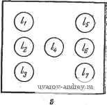 Главная страница » Электрика в театре » Мультиплексоры демультиплексоры в последовательностных схемах 1 ... 9 10 11 12 13 14 15 ... 39 ООО X oof as -о- 011 -о ЮО X 101 -о- о х 1 Рис. У.5.1. Граф переходов схемы управления светофором. ![]() о о о о о о о о о о о о о о о б ![]() Рис. У.5.2. Электронный имитатор игральной кости. о -общая схема устройства; б -граф переходов; в - расположение точек на граияж игрального кубика; г - расположение лампочек на панели. низкоскоростные н дорогостоящие. Поэтому рациональным следует признать такой режим согласования работы процессора с ВУ, при котором процессор значительную часть времени находится в состоянии ожидания сигналов от ВУ, инициирующих работу интерфейса обмена. CW 001 Пуск 0J1 Занято \010 Перестть 100 симВ /01 Передача подгот. очереди. симв. начало обмена сброс т -о Рис. у.5.3. Граф переходов схемы асинхронного интерфейса. На рис. У.5.3 изображен граф переходов для схемы интерфейса. Исход-Шм для схемы Является состояние ОЖИДАНИЕ. При поступлении соответствующего управляющего сигнала (CW) происходит смена состояния на ОПРОС и в процессор посылается ФЛАГ - сигнал готовности к опросу ВУ. По разрешающему сигналу - команде Пуск от процессора - происходит переход в очередное состояние. Если ВУ занято (сигнал Занято), то (через состояние СБРОС) происходит возврат на цикл повторного опроса. Если ВУ освободилось для обмена (сигнал Занято), схема переходит в состояние НАЧАЛО ОБМЕНА. 6 переходе в это состояние схема специальными сигналами информирует остальные устройства*). При поступлении сигнала Передача инициируется цикл посимвольной пересылки информации (состояние ПОДГОТ. ОЧЕРЕДИ. СИМВ. и команда Переслать симв.), пока не будет передан последний символ (LC). После этого схема переходит в исходное состояние ОЖИДАНИЕ. Спроектируйте эту схему с использованием мультиплексоров. У.5.4. На рис. У.5.4 представлены две части единого графа переходов для электронной игры Авторалли . Для простоты рассматривается случай только трех гоночных машин: Ci, Са и Сз- На рис. У.5.4, с изображен граф переходов для подсхемы выдачи информации о результатах заезда. Эти данные выдаются в ответ на нажатие кнопки КОНЕЦ. При нажатии кнопки СТАРТ посылается сигнал на входные линии сброса мультиплексоров А, В п С. Это позволяет опустить изображение ветвей возврата на основном графе переходов. Обсуждение подсхемы выдачи информации приведено здесь в целях полноты, и проектировать эту часть схемы в рамках данного упражнения не предлагается. На рис. У.5.4, б изображен граф переходов для основной части схемы этой электронной игры. Началу заезда соответствует исходное состояние схемы (ОЖИДАНИЕ). Это состояние ABC=000. Если первой к финишу приходит машина Ci, система переходит в состояние АБС =001. *) На ВУ, в частности, может посылаться сигнал резервирования его за данным процессом обмена (перевода в состояние ЗАНЯТО). - Прим. перев. СТЛРТ сброс результаты а ![]() Рис. У.5.4. Граф переходов схемы, управляющей игрой Авторалли . Если первой финиширует машина Сг, то происходит переход из состояния ЛВС=000 в состояние 100 и т. д. Спроектируйте управляющую схему для этой игры, используя мультиплексоры, У.5.5. На рис. У.5.5 изображены два графа переходов для упрощенного варианта электронной игры Торпедная атака . Играют два игрока. Цель одного из них заключается в том, чтобы провести транспортное судно из района погр