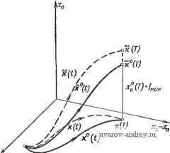 Главная страница » Электрика в театре » Свойства нелинейных систем 1 ... 11 12 13 14 15 16 17 ... 42 ![]() Также предполагается, что функция f=f(x, и) непрерывна и имеет непрерывные частные производные по Хг. Дадим следующее определение отимального управления. В начальный момент 4==о=0 система находится в состоянии х(0). С помощью допустимого управления \i(t) система должна быть переведена в заданное состояние х(Т) в конечный момент времени tf=T, где время Т может быть как закреплено, так и свободно. Допустимое управление u(t) называется оптимальным, если функционал /-=[/o(xW, и(0)Л (1.1-3) представляющий характеристику системы (так называемый функционал стоимости), принимает наименьшее возможное зна- Рис. 1.1-2. Оптимальное управление в пространстве состояний размерности п-2. чение. Предполагается, что подынтегральное выражение fo, называемое целевой функцией, удовлетворяет условиям гладкости, принятым выше относительно составляющих /г (f=l, 2, ..., п). (Заметим, что наиболее часто рассматривается целевая функция fo==l, для которой /=7\ В этом случае управление оптимально, если оно приводит к минимальному конечному времени Т.) Траектория x(t) = x(t), порождаемая оптимальным управлением и(0 = *(0. называется оптимальной траекторией. Эта траектория является решением векторного дифференциального уравнения (1.1-1), в правой части которого стоит оптимальное управление и (О- Управление и (t) и траектория xf/), удовлетворяющие необходимым условиям оптимальности, называются соответственно экстремальным управлением и экстремальной траекторией. Любое оптимальное управление (траектория) является также экстремальным, так как оно удовлетворяет необходимому условию. Обратное утверждение в общем случае неверно: чтобы экстремальное управление (траектория) было в то же время и оптимальным, оно должно также удовлетворять достаточным условиям. Так как рассматриваемые системы по предположению автономны, а состояния х(0), х(Т) фиксированы, то обсуждаемая проблема является задачей оптимального управления автономной системой с закрепленными концами (рис. 1.1-2). Задачу оптимального управления можно сформулировать также в несколько ином виде. Добавим еще одну переменную состояния, определяемую с помощью интеграла: о(0= 1/о(х(), u())rf, (1.1-4) о где /о-целевая функция из выражения (1.1-3) и 0<т</<Г. Очевидно, что Хо(0) = 0 и Хе(Г) = /. (1.1-5) Дифференцируя, получим о(0=/о(х(/), u(0)=/o(x, U). (1.1-6) Введем теперь /г+1-мерные векторы; пусть х = fxo, xj, f == = /о, f] и, следовательно, X E +,f Е +. Таким образом, как следует из выражений (1.1-1) и (1.1-6), векторное уравнение состояния можно записать в виде х = ?(х, U). (1.1-7) Управление является оптимальным, если составляющая Хо принимает в момент времени tK=T наименьшее возможное значение, т. е. Хо(Т) = тт (рис. 1.1-3). В соответствии с предложенным Понтрягиным методом [1, 112*] введем вспомогательные переменные фг=фг(0 (i=0, 1, ..., п). Для этого рассмотрим линейную и однородную вспомогательную систему дифференциальных уравнений . J (=0.1,..., /г), (1.1-8) в которой частные производные должны быть определены вдоль оптимальной траектории х . В матричных обозначениях дифференциальное уравнение относительно вспомогательных переменных примет вид J. (1.1-9) Вспомогательный вектор г];С/) определен только вдоль оптимальной траектории xit). Заметим, что уравнение (1.1-9) соответствует уравнению Эйлера -Лагранжа в вариационном исчислении. Построим теперь гамильт