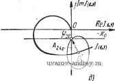 ![]() ![]() Tin-а) Рис. 8.2. Влияние А на число возможных вынужденных колебаний: А мало (а), Л велико (б. е). Л=Л,ф (г. а). Если Л - Лгкр, то кривая - ф) при некотором значении Ф = Ф20 пересекает прямую -хо лишь в точке, где эта прямая пересекает мнимую ось (рис. 8.2,). Эти значения Л1кр, Лгкр можно найти и в аналитической форме. Непосредственно из рис. 8.2, г имеем 11т5(?с-ф,о) = Im/(a)o) + K (8.6) Воспользовавшись (8.1), находим (8.7) л Г1т/(соо) +Хо1 Го(п-ф,о) Аналогичным образом из рис. 8.2, й имеем I (и - ф2о) 1 = 1 /(соо) + / <о I. откуда после подстановки в правую и левую части этого выражения действительных и мнимых частей У (со) и 9{п - фго) получим 2 кр - К 1 о( - (соо)]2 + [Im/(coo)p Ф2о)Г + [Го( -ф20)] (8.8) При А > Ащ) искомый сдвиг фаз ф определяется из уравнения, подобного (8.7): Го(л-ф)==-121/(+, или, на основании (8.7), I /о (я - ф) I = f о (я - ф,о). (8.9) (8.10) Отсюда следует, что при изменении А сдвиг фаз изменяется по закону, определенному функцией, обратной функции fo- В табл. 8.1 приведены графики функций fatt) и соответствующие им законы изменения сдвига фаз. ТАБЛИЦА 8.1 Графики функций f{t) и законы изменения сдвига фаз