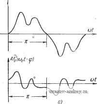 Число значений искомого сдвига фаз ф при превышении величиной А критического значения зависит от формы внешнего воздействия l{t) = Afo{f})t - ф). Так, если оно имеет несколько экстремумов внутри полупериода, например, два (рис. 8.3,а), то кривая 5(я -ф) будет иметь вид, показанный на рис. 8.3,6 ![]()