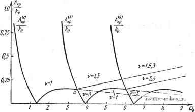 Главная страница » Электрика в театре » Автоматические релейные системы 1 ... 37 38 39 40 41 42 43 ... 57 (10.122), получим - U + 6 *° СОо (10.124) Если значения т = - и соо==сооГ соответствуют области / (рис. 10.20), то правая часть неравенства (10.124) будет отрицательна и условие устойчивости вынужденных колебаний частоты соо будет выполнено, если Л>Л, р, (10.125) т. е. если выполнено условие существования этих вынужденных колебаний. Если же значения т и йо соответствуют области , то правая часть неравенства (10.124) будет положительна, и для 0.75 0.15 Обпасть устоачаВых Вынужденных колебаний 0.5 1.0 1.5 2.0 15 .iO 5.5 40 .5 (Ьд Рис. 10.21. Граница устойчивости вынужденных колебаний. устойчивости вынужденных колебаний данной частоты необходимо, чтобы амплитуда внешнего гармонического воздействия А превышала на определенную величину критическое значение Л, кр. В этом случае из условия устойчивости (10.124) получаем Л < Л?кр + п \2 N 2ПТ СОо (10.126) На рис. 10.21 изображена граница устойчивости вынужденных колебаний, построенная по формулам (10.125) и (10.126) при т == 0,5 и к~ 0. Граница устойчивости до точки а совпадает с границей существования вынужденных колебаний. После точки с она проходит выше границы существования вынужденных колебаний (пунктирная линия). Область устойчивости лежит выше границы устойчивости (сплошная линия). Если вынужденные колебания частоты соо устойчивы, то автоколебания в системе (определяющиеся тем значением со, при котором Л1кр обращается в нуль) будут подавлены. Для субгармонических колебаний выражение для Ч^*(р) совпадает по форме с уравнением (10.114), но теперь следует принять во внимание, что соц - -~, где v = 3, 5, 7, ..., п. 5Г( ф) + /()]. (10.127) Причем, здесь согласно (8.44) Re 9 (vjt - ф) = Л vf {ул Ф). (10.128) Границы устойчивости субгармонического режима определяются по тем же соотношениям, что и границы устойчивости вынужденных колебаний основной частоты. При этом в (10.119) - г ![]() 10 12 (Jg Рис. 10.22. Границы различных условий устойчивости субгармонических колебаний. (10.120) производятся указанные выше подстановки, в частности, щ = ~-. Таким образом, условия устойчивости субгармонических колебаний запишутся в виде Avfj(vrt -ф)<0 (10.129) Avf (то-ф)< 4е (10.130) рде юв = сов^м. Границы областей различных условий устойчивости для субгармоник порядка v теперь будут иметь вид (10.131) Они отличаются от (10.121) лишь измененным в v раз масштабом оси абсцисс (рис. 10.22). Для каждого v с незаштрихован-ной стороны справедливо условие (10.129), а с заштрихованной-условие (10.130). ![]() Рис. 10.23. Граница устойчивости субгармонических колебаний. В частном случае, при гармоническом воздействии f о ( в^ - ф) = sin (сов^ - ф) имеем из (10.122) Av cos {vn - ф) = cos ф > О, т. е., как и ранее, ф| < 90°, а из (10.122) получаем Лс05ф>- (10.132) Таким образом, условия устойчивости принимают вид л>л',1р. (10.133) Если параметры f и лежат с незаштрихованной стороны границы (рис. 10.22) и А> .1 кр k 4е nv 2.,! СОв (10.134) Границы устойчивости субгармонических колебаний v = 3 и v = 5, построенные по формулам (10.133) и (10.134), изображены на рис. 10.23. Здесь же приведена и граница устойчивости для основного вынужденного колебания (v = 1). Область устойчивых субгармонических колебаний находится выше соответствующих границ устойчивости. В начальной части граница устойчивости совпадает с границей существования субгармонических колебаний. Затем граница устойчивости (сплошная линия) проходит выше границы существования субгармонических колебаний (пунктирн