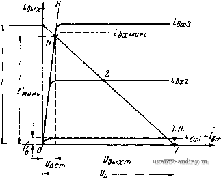 Главная страница » Электрика в театре » Проектирование транзисторных усилителей низкой частоты 1 ... 6 7 8 9 10 11 12 ... 19 Взяв Л1 иТ =Л1нк а ск =1,19, определим необходимую индуктивность перви пой обмотки трансформатора 0,159(2/?к~ -Г,) 0.159(88-6,6) Уточненное значение тока покоя цепи коллектора /к© , определенное по сквозной динамической характеристике, получилось равным 0,246 а, уточненное значение напряжения питания цепи коллектор-эмиттер найдем из рис 3.16, откуда получим и'кэО =10,8 в Требуемое напряжение источника питания каскада Ёц должно быть равно к - кэО + /ко макс --\- JaO маке /?э + 2/эО макс R кэО /кО макс 2 ho макс э 2/кО макс эО - = 10,8 + 0,32 -f 0,32 1+2 . 0,32 2= 13,46 е. Пример 3.3. Рассчитаем трансформаторный двухтактный каскад мощного усиления в режиме А с транзисторами, включенными с общей базой, имеющий следующие данные fa =80гц, 1в=7000гц, Л1н<1 дб (М„< 1,12), Рвых =60жег, г<3%, сопротивление нагрузки Л'н =10 ом Каскад должен работать в диапа зоне изменения температуры окружающей среды от +5° до -f 30°С при установке в него любого исправного экземпляра транзистора. Определим .мощность, которую должен отдавать один транзистор, выбрав кпд выходного трансформатора равным 0,73 в соответствии с табл. 2 3 Р fin . ш-з P ==-E=: L i =0,0411 em = 4I,l мет. При кпд каскада в режиме А порядка 0,48 выделяемая в транзисторе при отсутствии сигнала мощность составит Подходящим для рассчитываемого каскада является германиевый транзистор типа П14А, пмеющий максимальную рассеиваемую мощность Рмакс =150 мет, Рмнн =20, Рмакс =40, наибольший ток коллектора в режиме усиления 20 ма, наибольшую температуру коллекторного перехода Гр[дд =+85°С, тепловое сопротивление от перехода к окружающей среде R-- =0,2°С/л{ег, наибольшее напряжение коллектор-база f/кбдоп =20 в, максимальное значение начального тока коллектора /кнс =10 мка Для стабилизации режима при изменении температуры и замене транзисторов используем в каскаде эмиттерную стабилизацию Так как транзисторы каскада включены с общей базой, предыдущий каскад берем трансформаторный инверсный В этом случае делитель подачи смещения можно взять общий и схема каскада примет вид, изображенный на рис 3 18 Возьмем подводимое к транзистору напряжение питания коллектор - база f/кбо ориентировочно равным 0,3икбдоп =0,3X20=6 в Для нахождения положения точки покоя определяем необходимый ток покоя /ко~ 7, = о п ,й' n~vQ а =0,0143 а = 14,3 лгй. 2г1г1 икбо 2 0,48 0,73 .6 На семействе выходных статических характеристик транзистора П14А для включения с общей базой отметим точку покоя (t/кбо =6 в, /кО = 14,3 ма) и про- еч через нее нагрузочную прямую. При полном использовании транзистор 40 току, так и по напряжению нижняя точка нагрузочной прямой будет ле- ![]() Рис 318 Принципиальная схема двухтактного выходного каскада. к примеру 3 3 кманс \- т Л74А О ![]() 30 25 f5 10 2СГ us,S Рис 3 19 Выходные характеристики транзисторов П13-П16А для включения с общей базой, к примеру 3 3 жать на горизонтальной оси при £/кб=2/7кбО =12 в, а верхняя точка - на вертикальной оси при /к =2/кО =28,6 яа (рис 3 19). Отсюда сопротивление нагрузки цепи коллектора составит , ---------. 1 IV грузки цепи коллектора составит 28,6 . 10 = 420 ом. Ток смещения эмиттера /эО , соответствующий точке покоя, при Рмин =20 будет равен г /ко /ко (1 + Рмин) 14.3(1+20) /эо = --= -й- =-- = 15 ма. мин Рмин 0 Возьмем амплитуду тока входного сигнала /вх равной 0,98/эо /вх; = /э„ =0,98 . 15= 14,7 лш Отметим крайние положения ра- I I I-1 I-1- бочей точки на нагрузочной прямой (точк